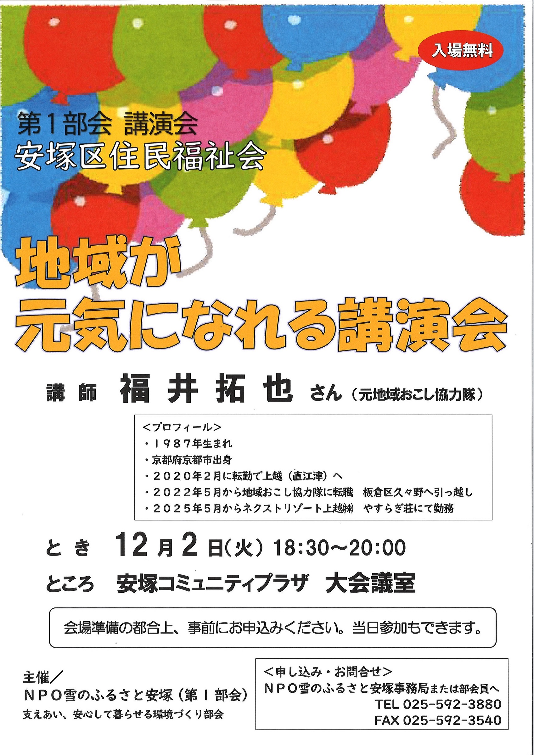 ◎12/2(火) 安塚区住民福祉会「地域が元気になれる講演会」